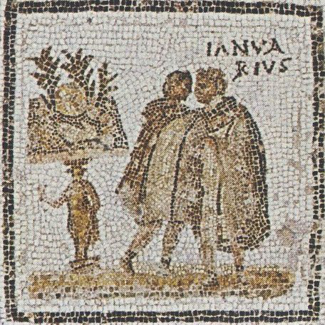 JANUAR mensis Ianuarius Måneden var indviet til guden Janus, som havde et hoved med 2 ansigter. Derved kunne han både se tilbage på det forgangne og frem mod det nye. |
